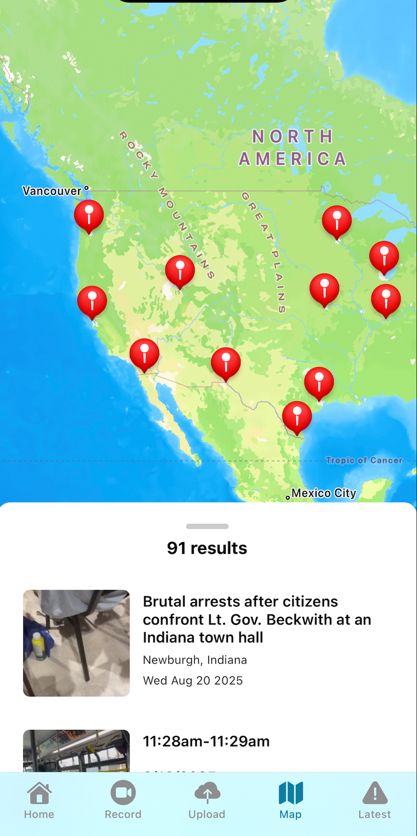 The videos available on Eyes Up are essentially the same you might see when scrolling through TikTok, Instagram, or X. They are a mix of professional media reports and user-generated clips of ICE arrests. Many of the videos are clearly just re-uploads of material taken from those social media apps, and still include TikTok or Instagram watermarks. Mark said the videos are also often taken from Reddit or the community- and crime-awareness app Citizen too.