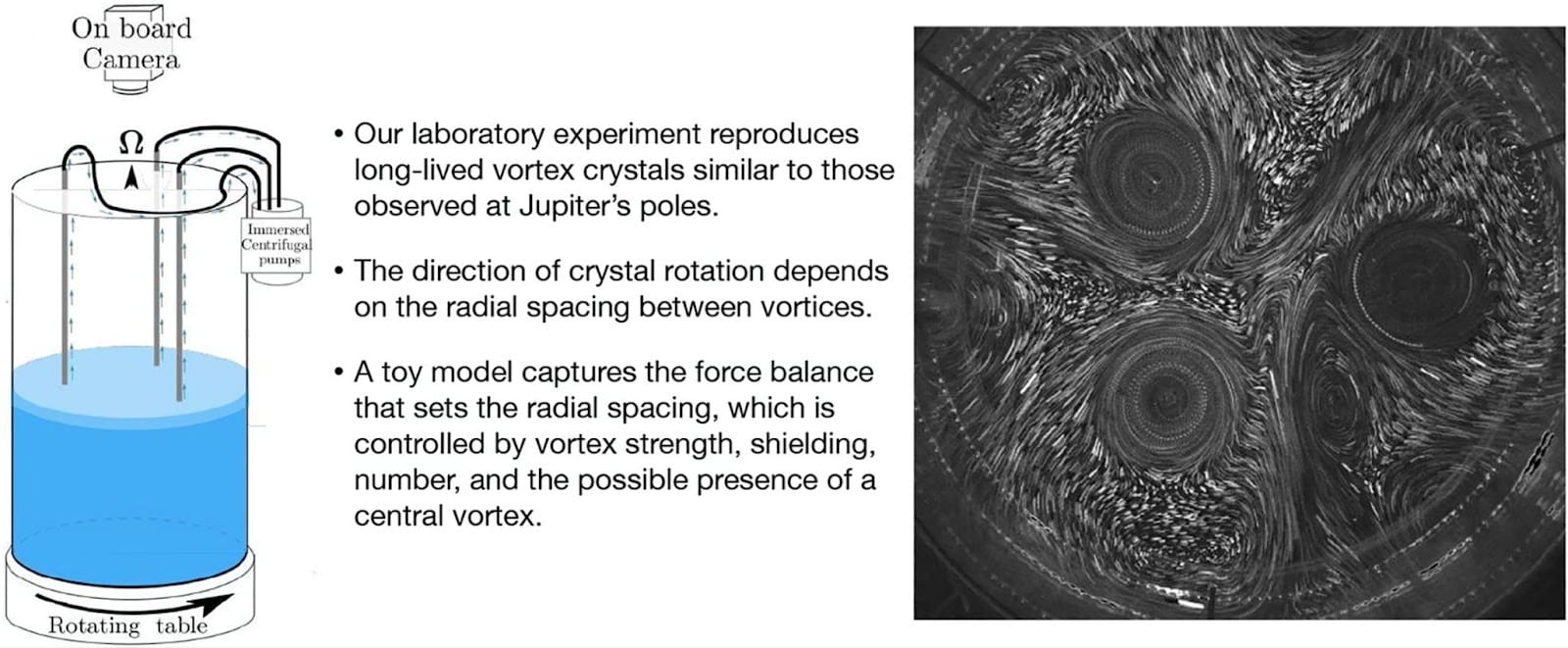 Now, scientists led by Djihane Benzeggouta of Aix Marseille University have “experimentally reproduced long-lived vortex crystals like those at Jupiter’s poles” in fluid tanks with a mix of fresh and saltwater, according to the new work.