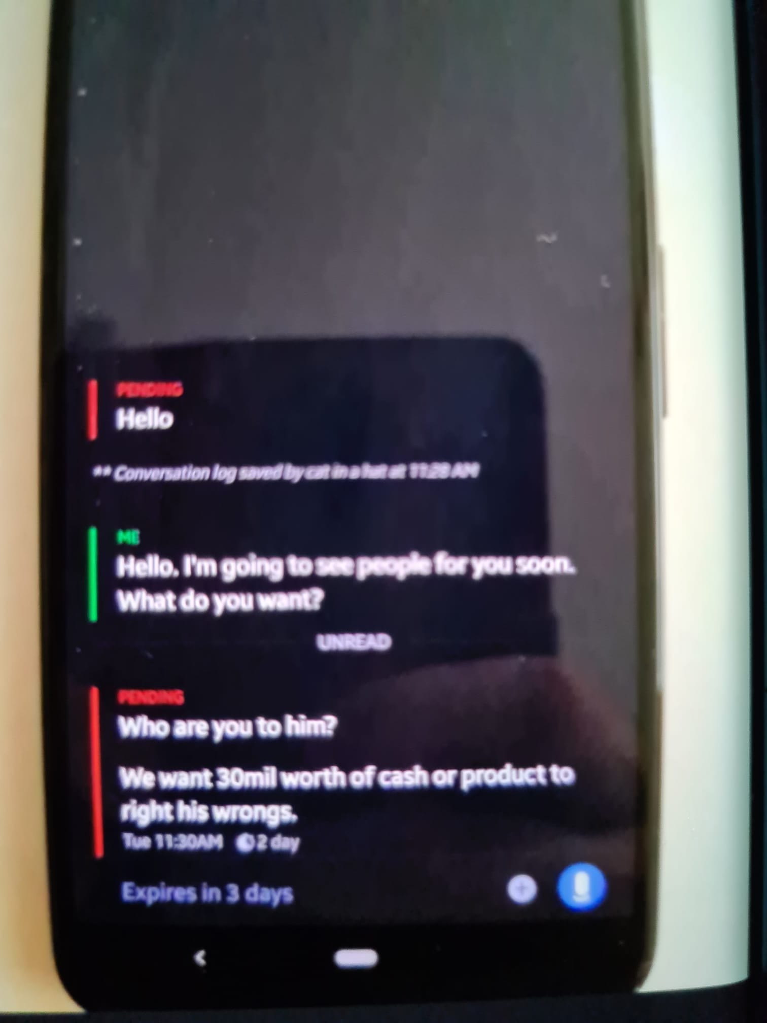 Photos of messages sent during Mancuso's kidnapping. Image: Joseph Cox.