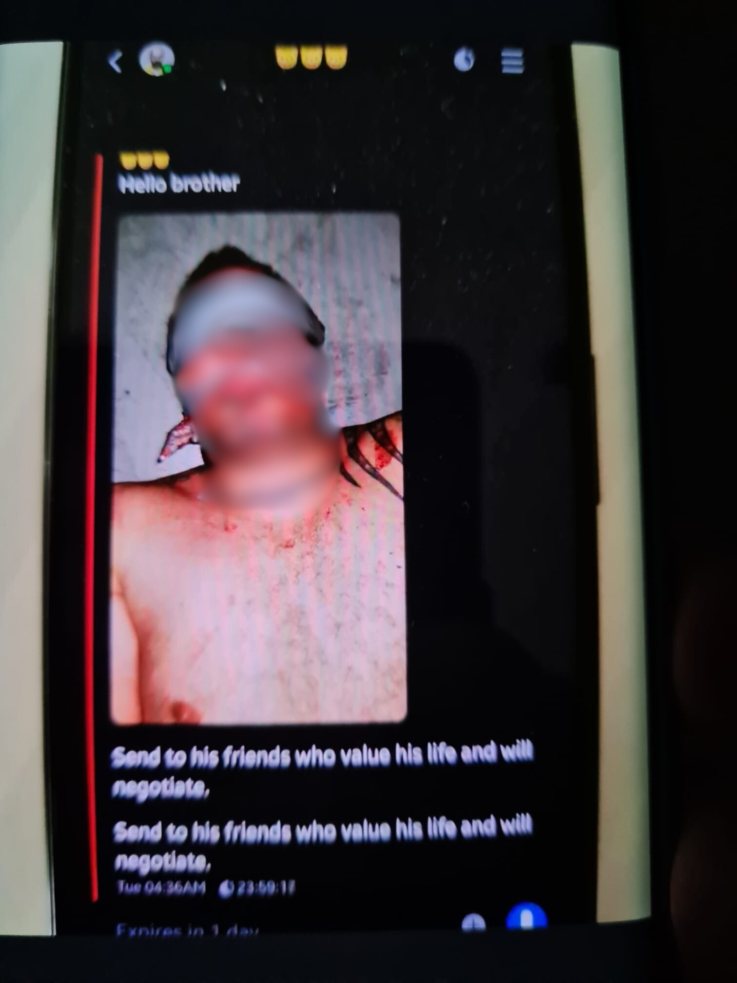 “Hello brother. Send to his friends who value his life and will negotiate.”