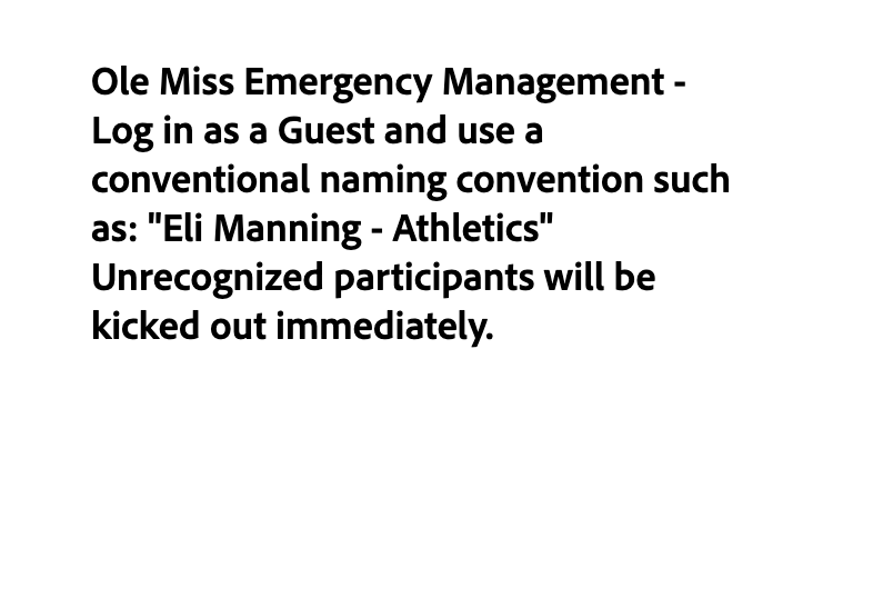 “Ole Miss Emergency Management - Log in as a Guest and use a conventional naming convention such as: ‘Eli Manning - Athletics.’”