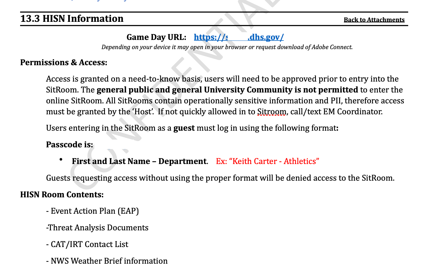 “The general public and general University Community is not permitted to enter the online SitRoom,” it adds. “All SitRooms contain operationally sensitive information and PII, therefore access must be granted by the ‘Host’.”