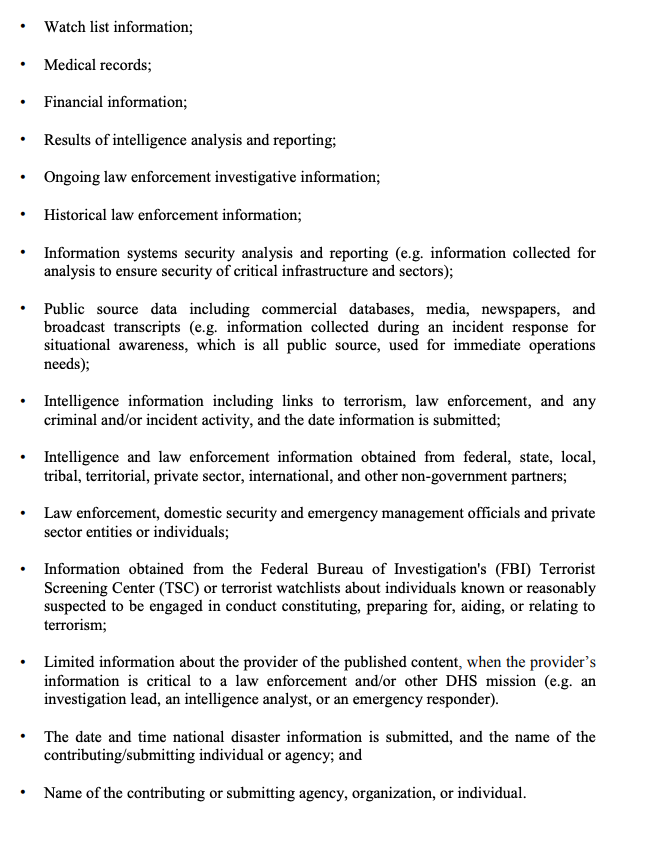 In an updated memo from 2012 discussing whose personal information HSIN can collect and disseminate, the list includes the blanket, “individuals who may pose a threat to the United States.”