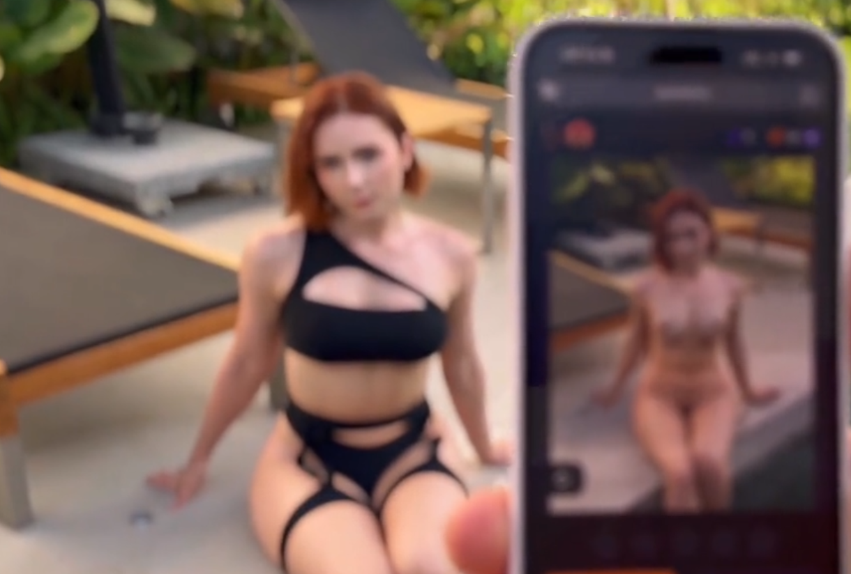 Still images from Sweetie Fox's sponsored Pornhub video for a "nudify" app.