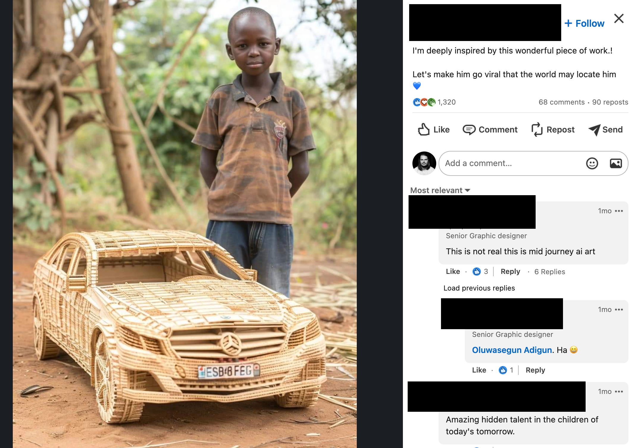 The same types of bizarre AI images that have repeatedly gone viral on Facebook have begun to make their way to LinkedIn. In some cases, these images are performing very well, as is the case on Facebook. In others, they are identified as AI by a majority of the commenters.
