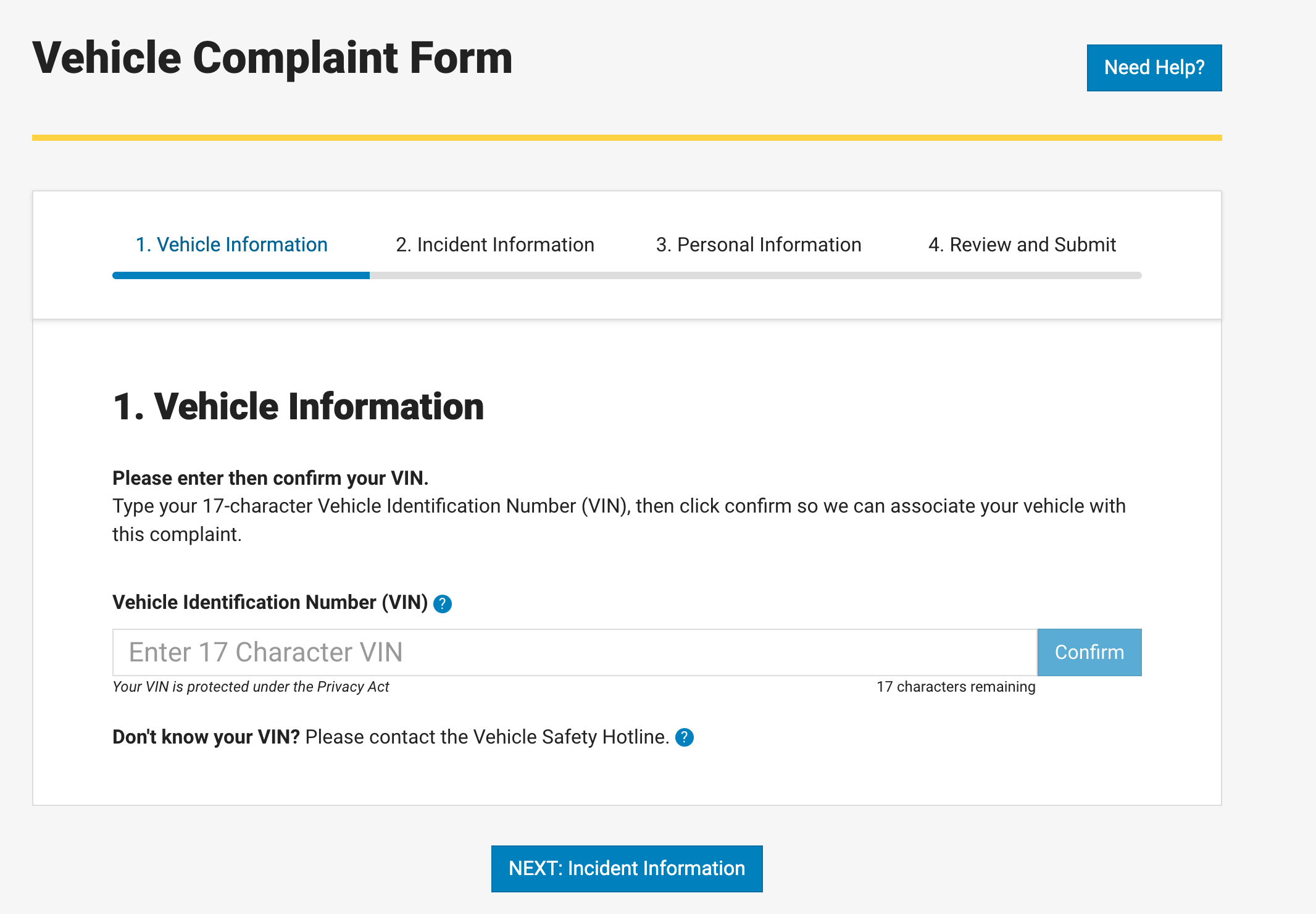 NHTSA did not immediately respond to a request for comment. The agency’s safety reporting page still requires a VIN number to submit an incident.