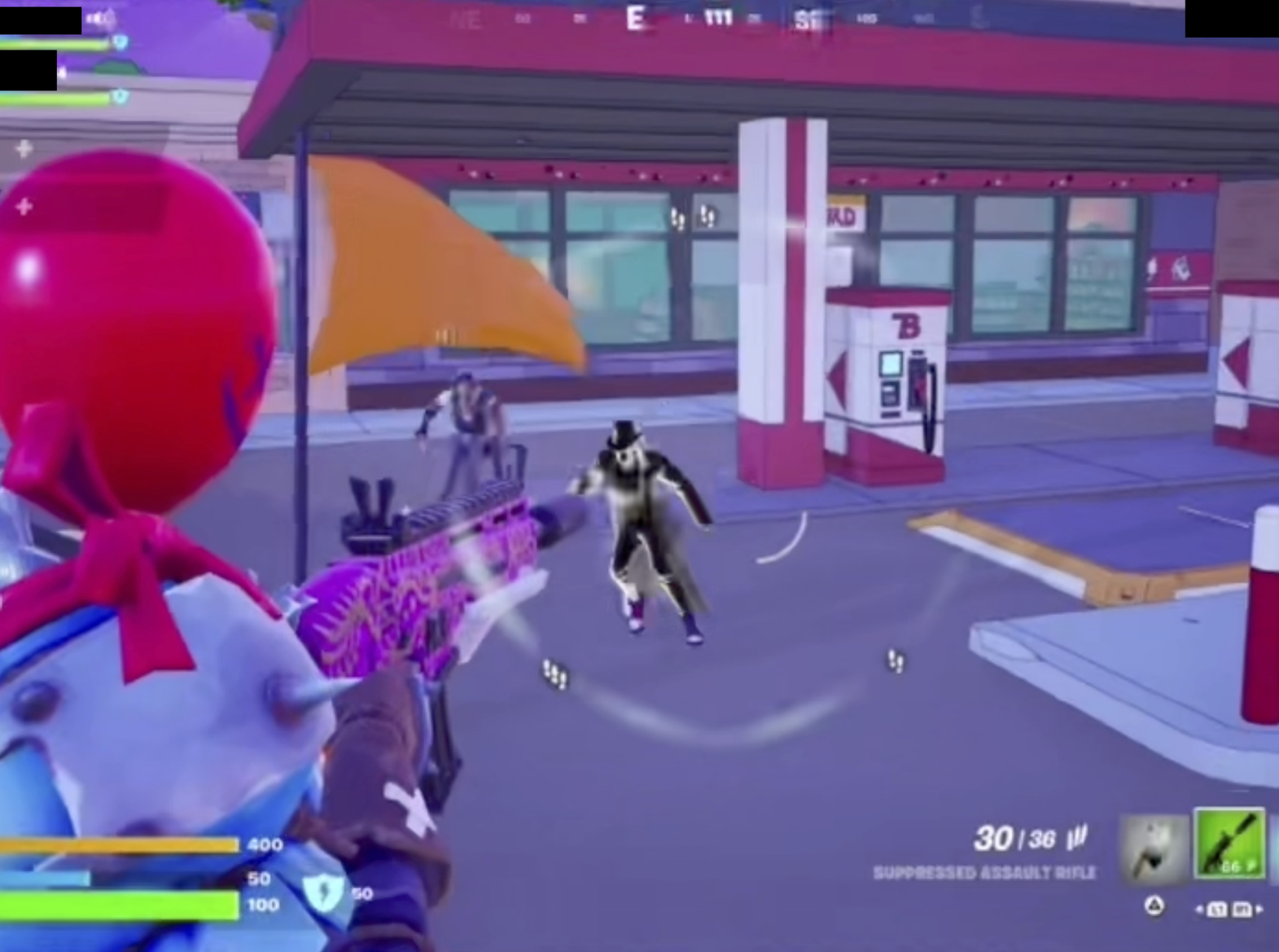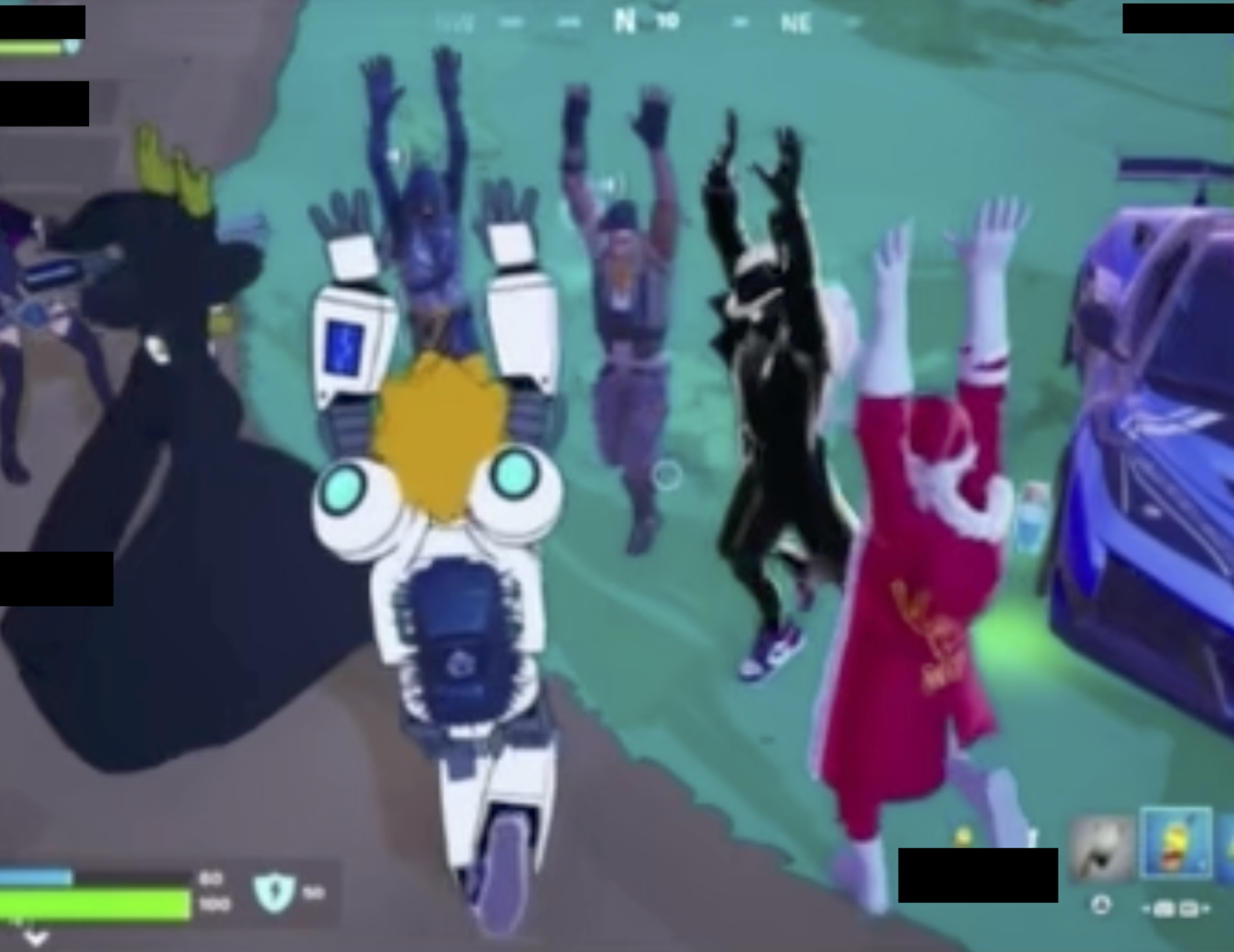 Scenes from the Nov. 21 Fortnite event. Redacted to remove players' usernames and other identifying information.