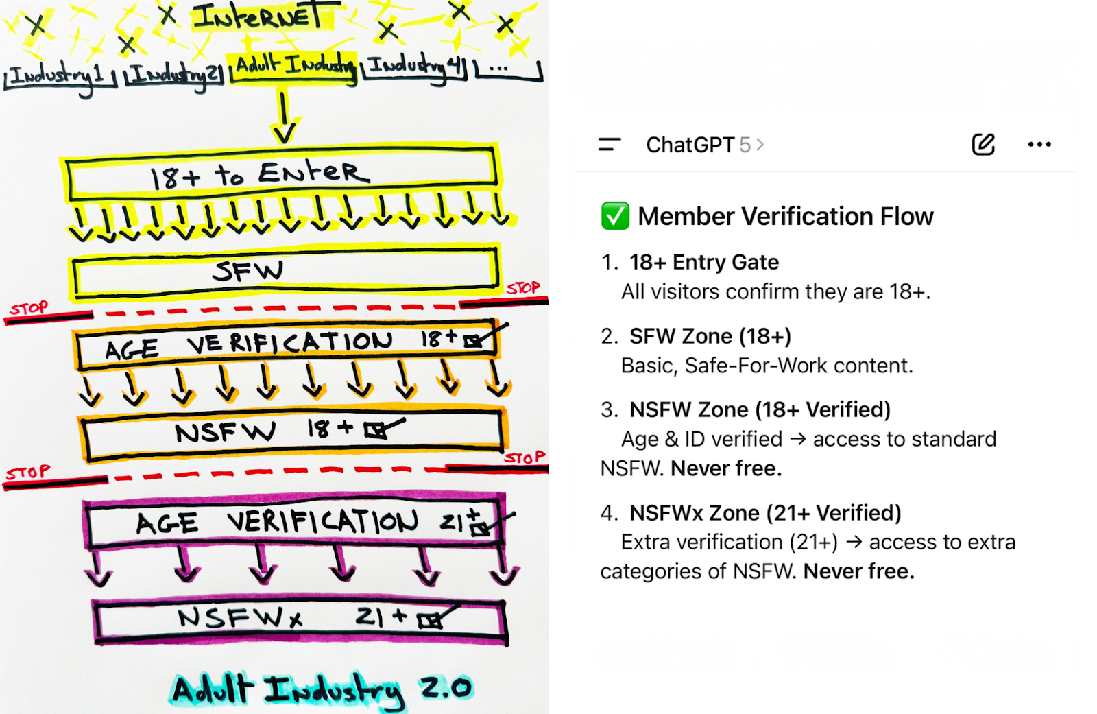 “The impact strength of a positive leader ⚡ Effectiveness ⚡ Execution ⚡ Discipline ⚡ Accountability,” one post in August said. On August 20, @ManyVids posted an image on X of a flow chart alongside a screenshot of a ChatGPT conversation, seemingly illustrating how the platform would bring in users through a “safe-for-work” zone, then allow them to access NSFW content after verifying their identifications. “Our vision: Adult Industry 2.0 isn’t about more revenue. It’s about evolution,” the post said.
