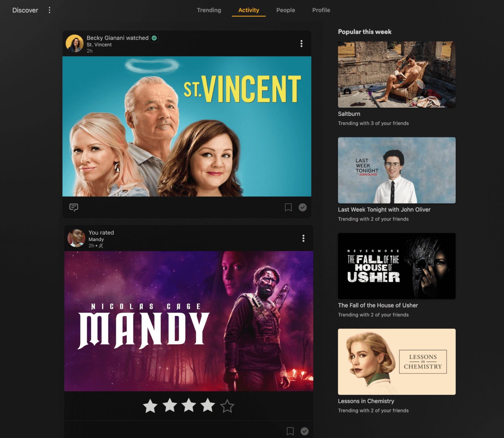 A new feature, called “Discover Together,” expands social aspects of Plex and introduces an “Activity” tab: “See what your friends have watched, rated, added to their Watchlist, or shared with you,” Plex notes. It also shares this activity in a “week in review” email that it sent to Plex users and people who have access to their servers.