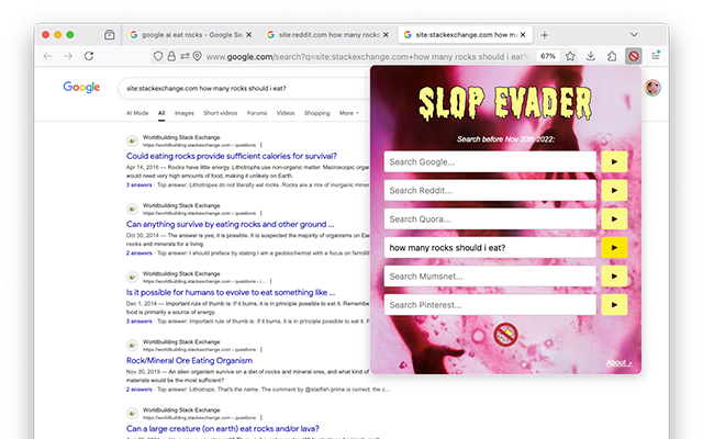 Currently, Slop Evader can be used to search pre-GPT archives of seven different sites where slop has become commonplace, including YouTube, Reddit, Stack Exchange, and the parenting site MumsNet. The obvious downside to this, from a user perspective, is that you won’t be able to find anything time-sensitive or current—including this very website, which did not exist in 2022. The experience is simultaneously refreshing and harrowing, allowing you to browse freely without having to constantly question reality, but always knowing that this freedom will be forever locked in time—nostalgia for a human-centric world wide web that no longer exists.