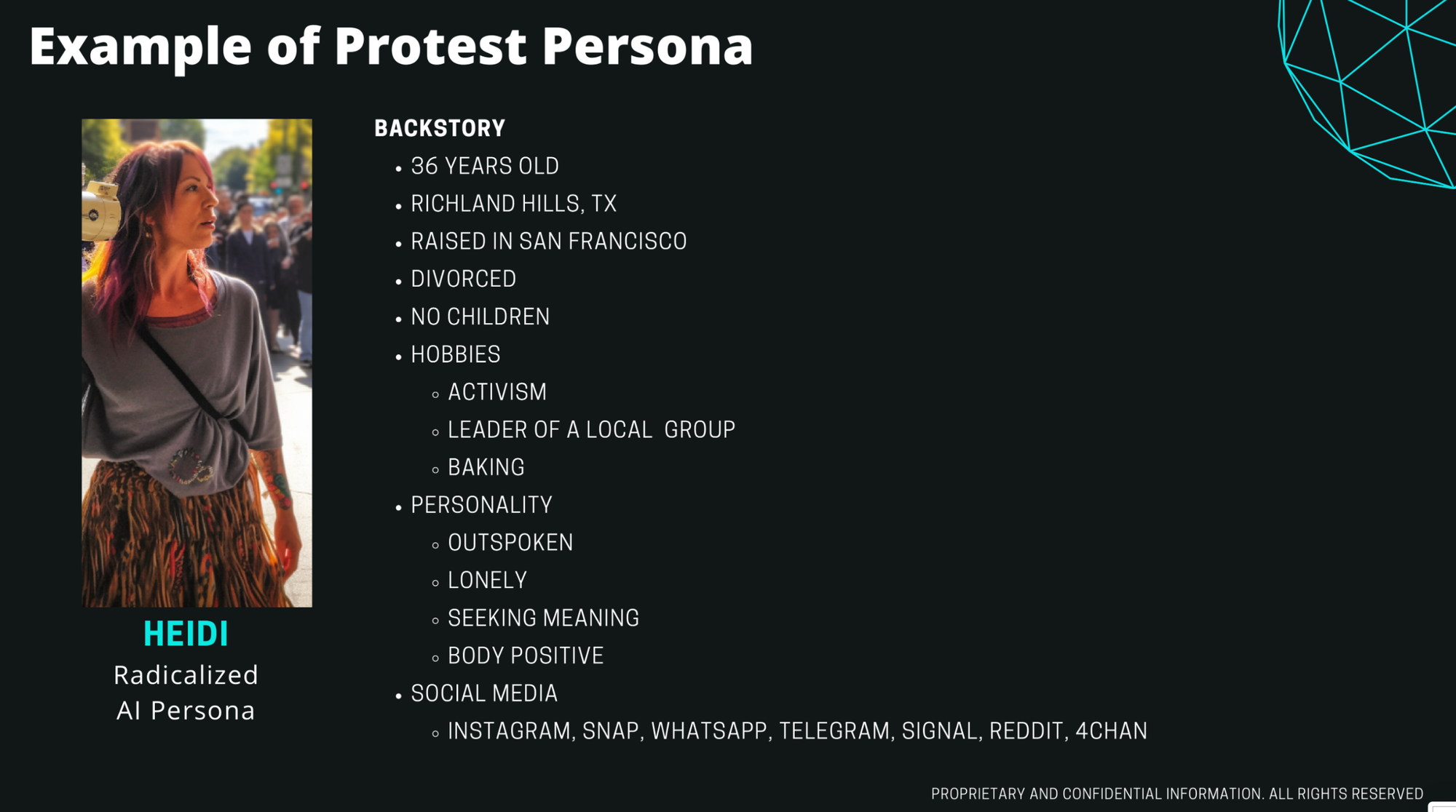 Massive Blue, the New York-based company that is selling police departments this technology, calls its product Overwatch, which it markets as an “AI-powered force multiplier for public safety” that “deploys lifelike virtual agents, which infiltrate and engage criminal networks across various channels.” According to a presentation obtained by 404 Media, Massive Blue is offering cops these virtual personas that can be deployed across the internet with the express purpose of interacting with suspects over text messages and social media.